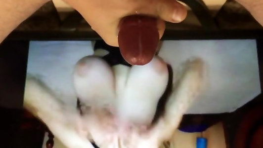 My masturbates my big dick until she spills my semen on her tits big tits big cock