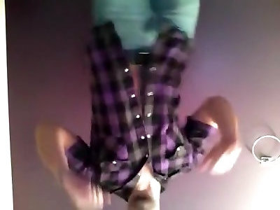 Cute sexy blonde trans dancing dressed with miniskirt and lingerie while masturbate