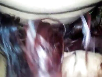 Crossdresser Sacha choking her man on her beefstick