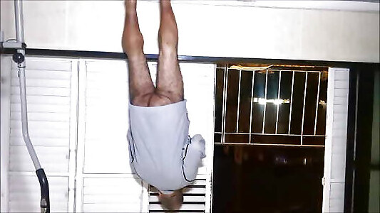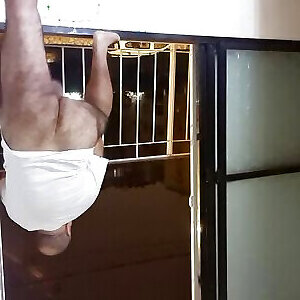 Bottomless Daddy Waiting in Balcony, Hoping to Get Caught