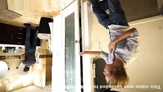 Cute inexperienced lad Chris Jansen milks in a bathroom