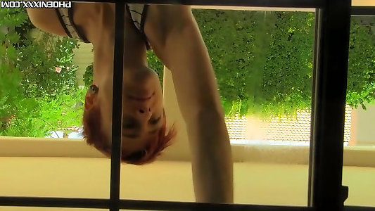 Muscular Hunk interrupted by maid while sliding oily fuck-stick into Dark-hued Cougar