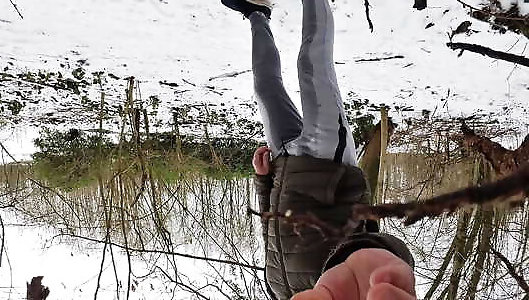 Quick pee in snowy landscape