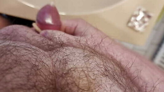Pee on my unshaved belly, close up