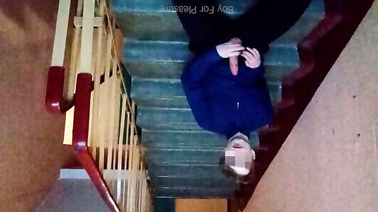 Public jerking off on the stairs after school