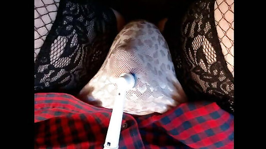 Jerking my small cock with panties on me!