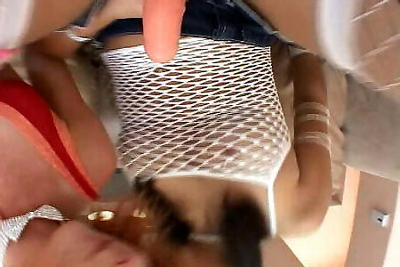 A lezzie cougar gets finger-banged then licks asshole dark haired assistant’s bum