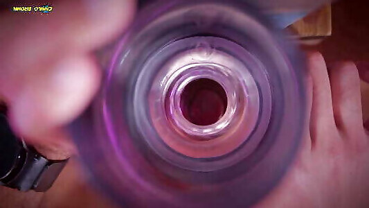Closeup view from inside my fake pussy while I fuck it slow and passionate until I shoot a big load. Cum inside fleshlight.