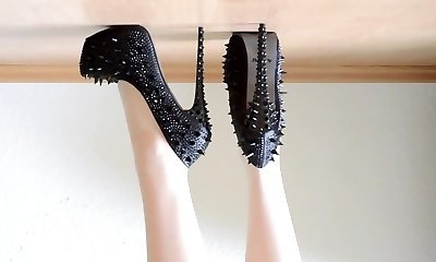 Crossdresser Sussanne sexy nylon legs and soles. Wearing high heel stiletto sandals.