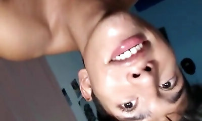 Sumptuous twink Andres ZP blowing my big uncut Latino cock until I cum on his face.