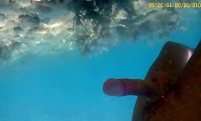 Lusty butt pirate plays with his dinky by the pool and shoots a load