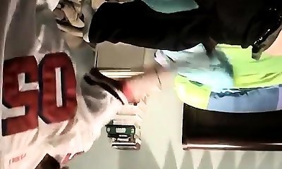 Elijah Young spanks his tool after he gives an interview